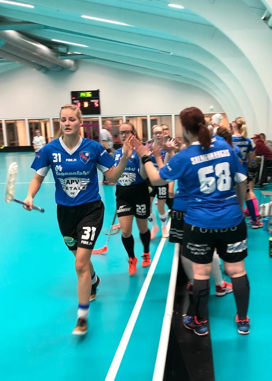 #31 Nita Mäki-Ventelä pisti pallon ISB II:n verkkoon ja kavensi pelin loppulukemiksi 3-5. Syöttöpisteen osumasta nappasi #22 Katri Ojaniemi.